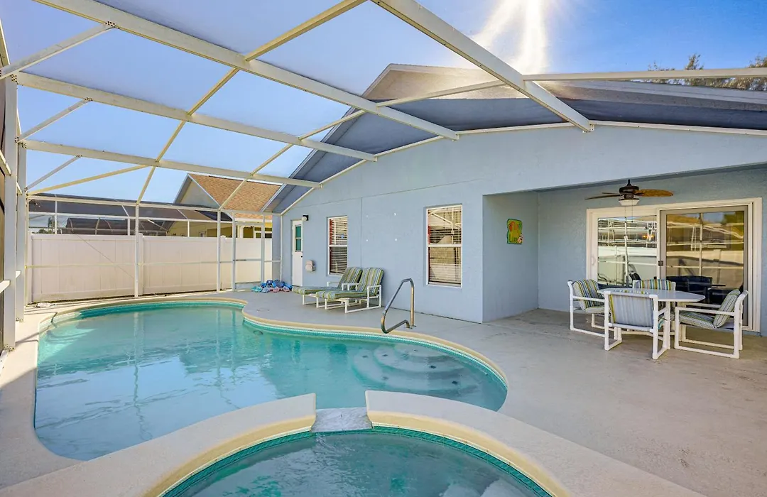 9 Mi To Walt Disney World Family Home With Pool! comprend un coin repas extérieur avec un réfrigérateur, de la vaisselle et un lave-vaisselle. Vous aurez la possibilité de dîner à Waffle House, situé à 20 minutes à pied. L'arrêt de bus Cagan View Road est dans une zone de 750 mètres. Cette villa de 4 chambres dispose d'un bain chaud.